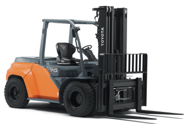 Chariot élévateur à mât muni de bras de fourche, sur lesquelles la charge est placée en porte-à-faux par rapport aux roues et est équilibré par la masse du chariot dans la capacité nominale est inférieur ou égale à 6 tonnes.