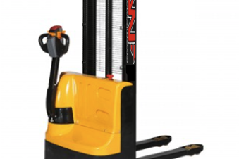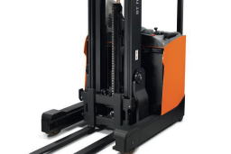 Gerbeur à conducteur accompagnant translation et levage motorisés, manutention sur bras de fourche. Conçu pour charger et décharger un véhicule à quai, Hauteur de levée supérieur à 2,50 m.